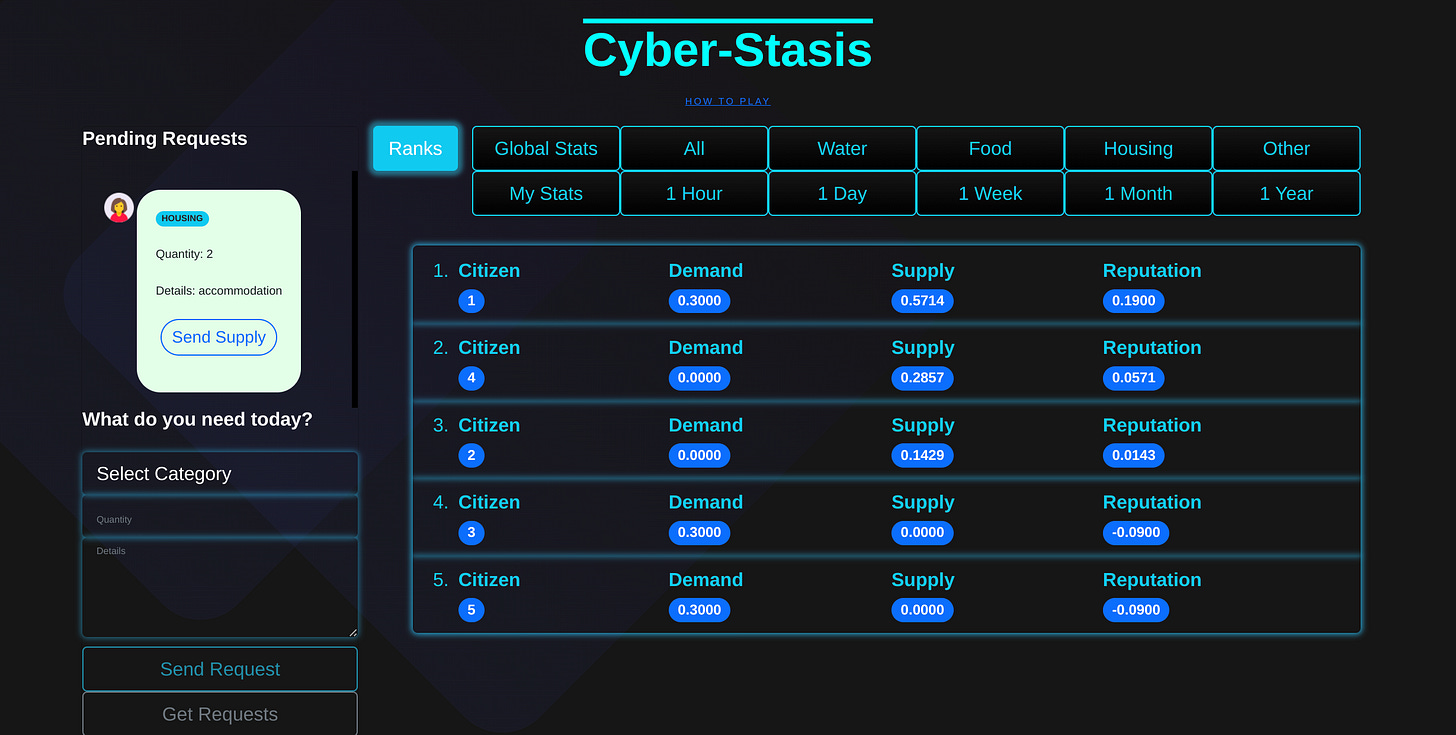 I continued reading. In short, the game represented a concept of decentralised production and distribution of goods based on a "consumption economy" as an alternative to a “property economy”.
